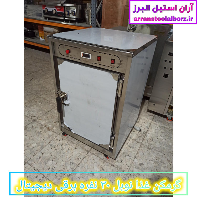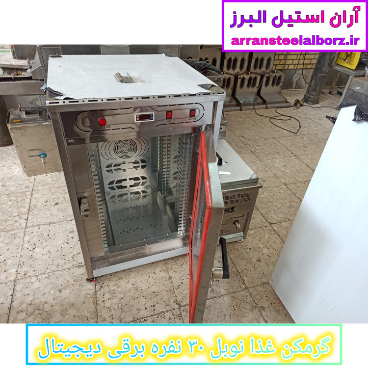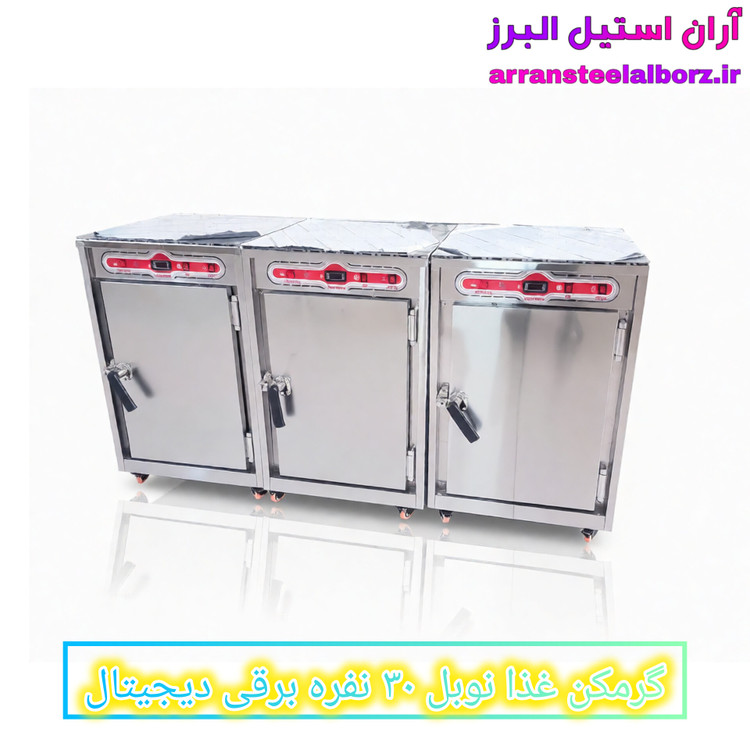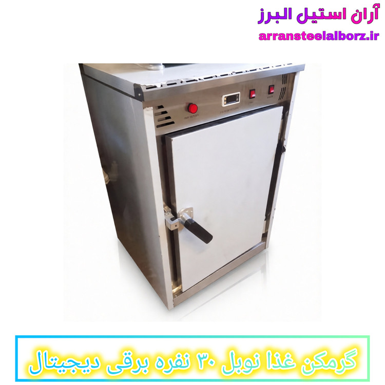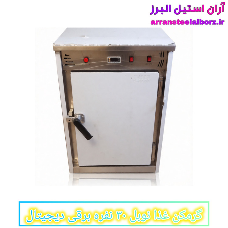 گرمکن غذای دیجیتال ۳۰ نفره، گرمکن غذای نوبل، گرمکن غذای برقی صنعتی، فروش گرمکن غذای دیجیتال، گرمکن غذای با گارانتی، گرمکن غذای ۲۴ میلیونی، گرمکن غذای با فن گردش هوا، گرمکن غذای استیل با طبقه کروم، آران استیل البرز