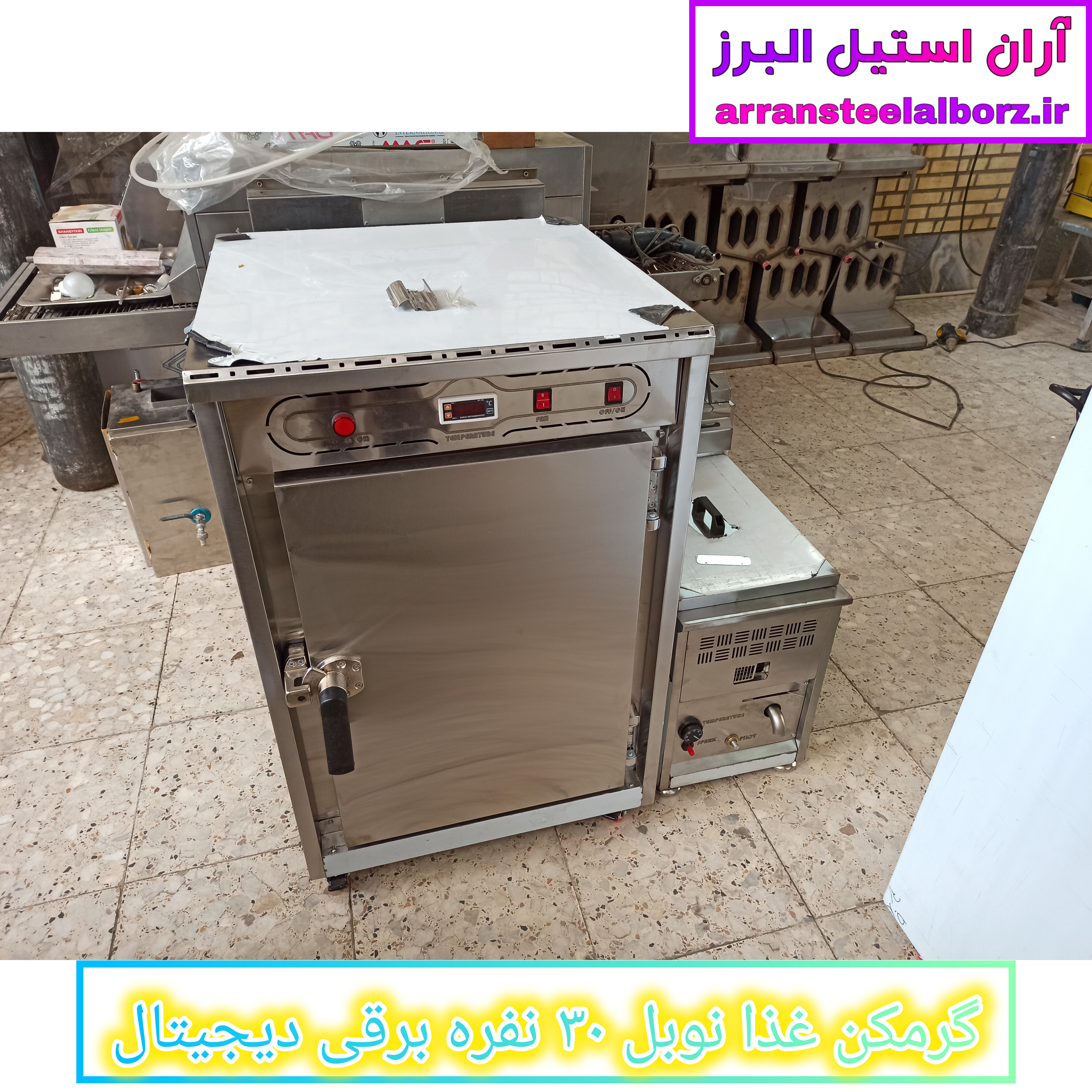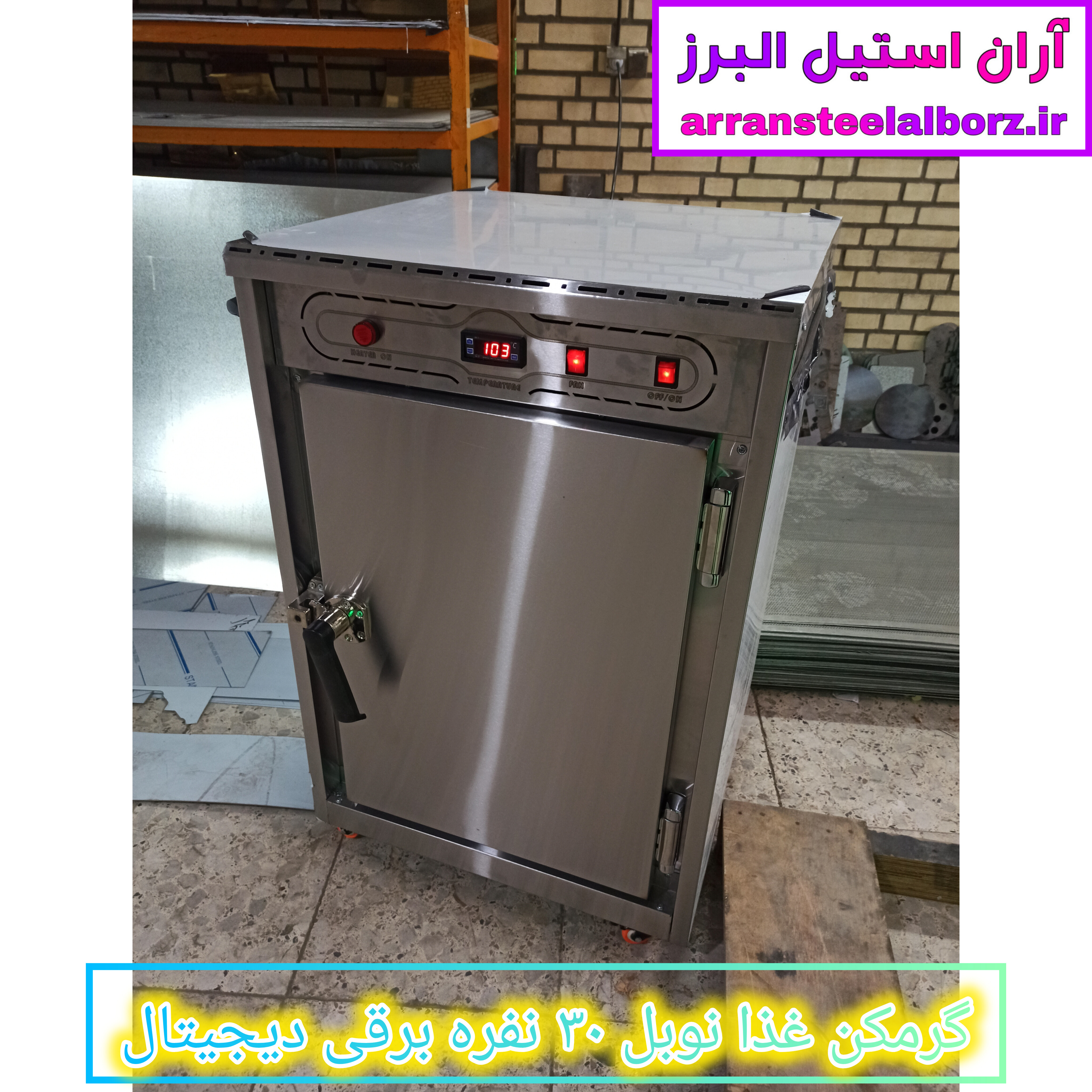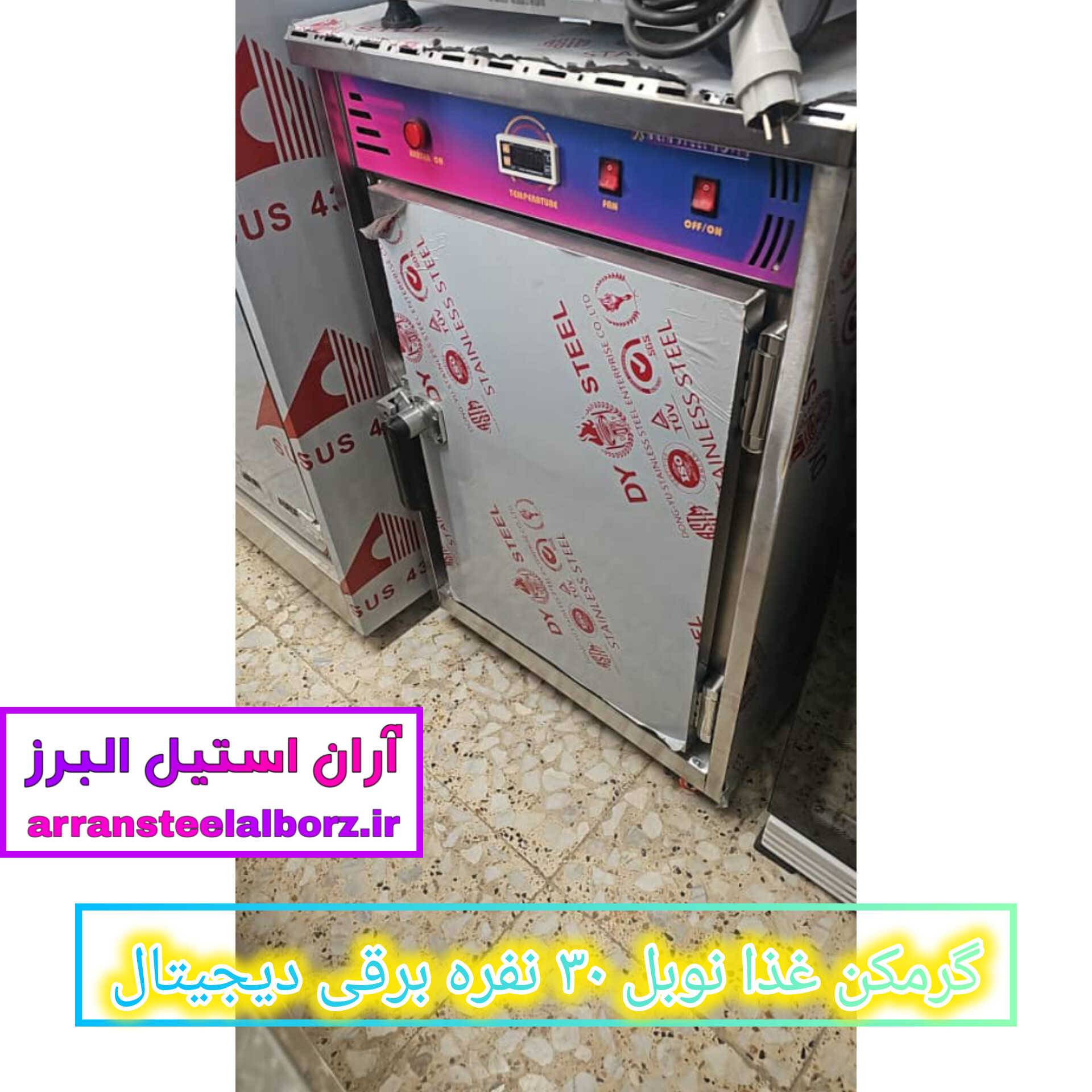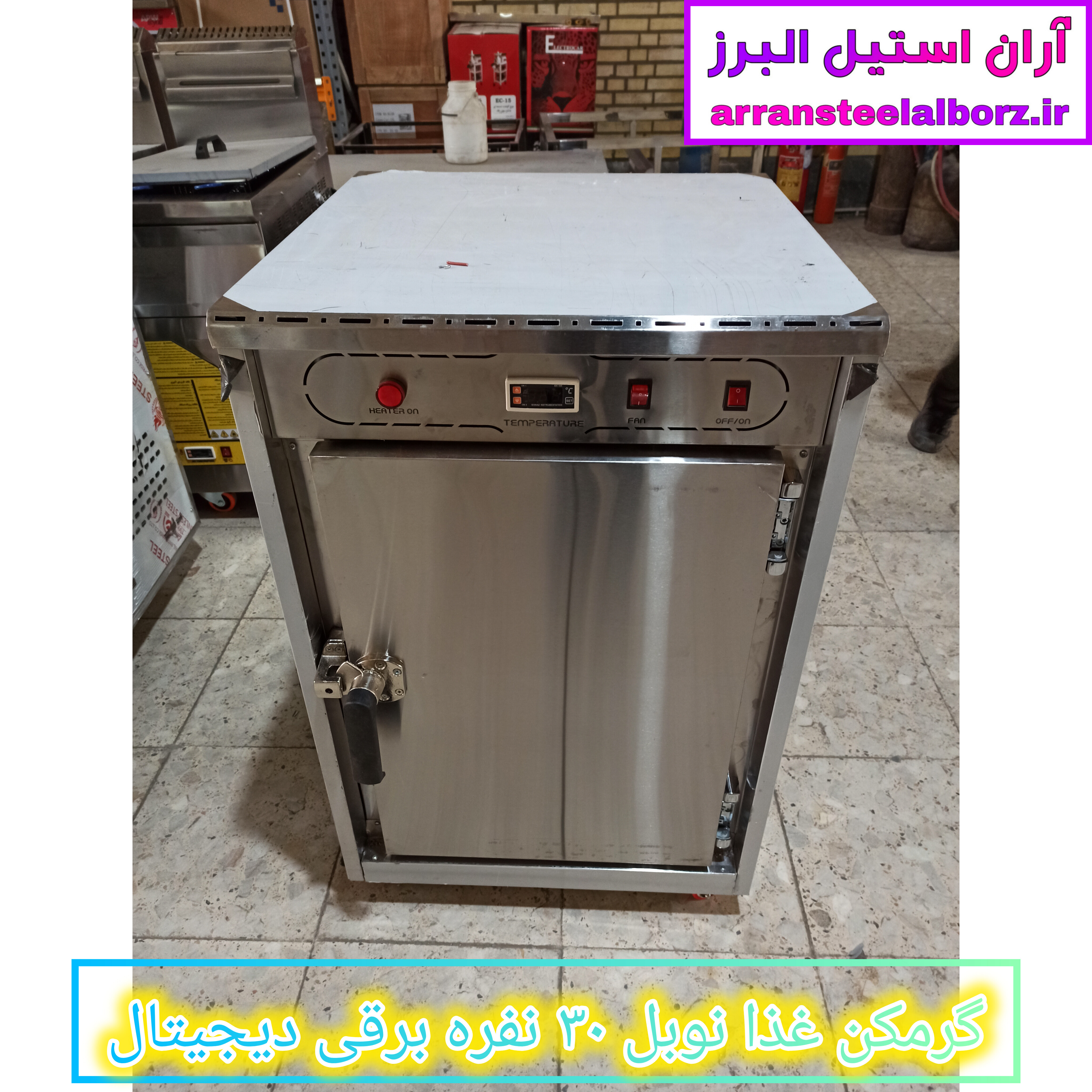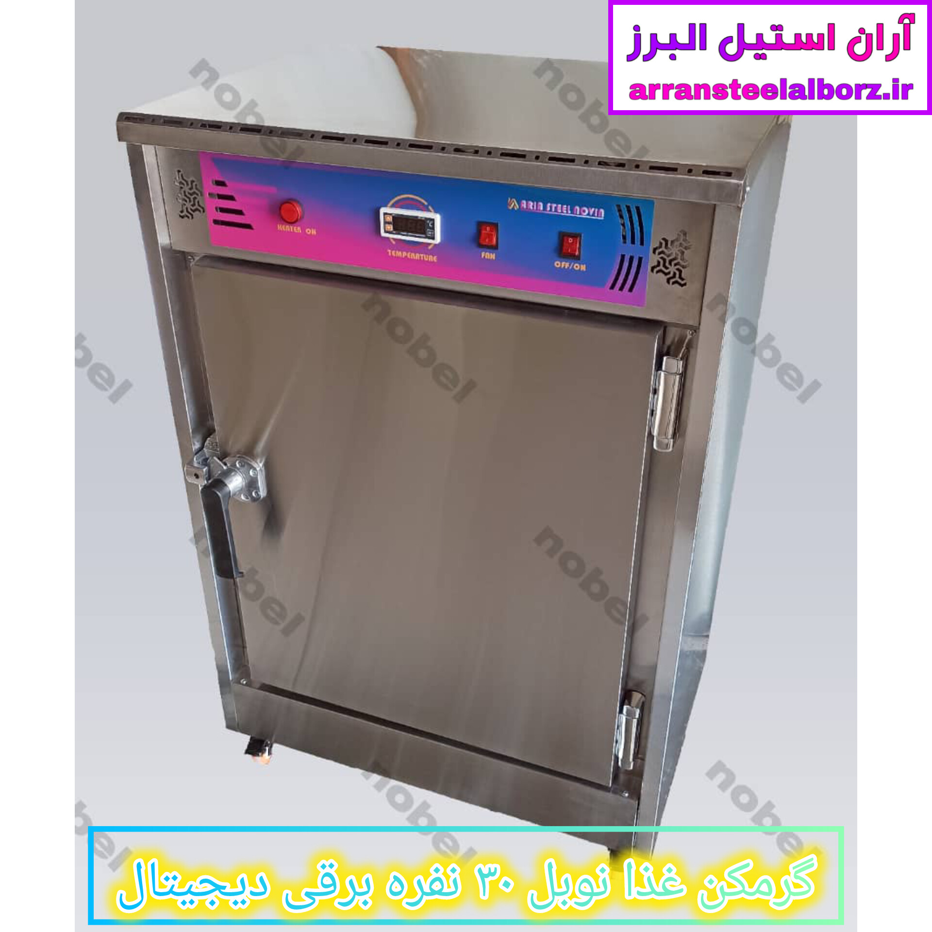 گرمکن غذای دیجیتال ۳۰ نفره، گرمکن غذای نوبل، گرمکن غذای برقی صنعتی، فروش گرمکن غذای دیجیتال، گرمکن غذای با گارانتی، گرمکن غذای ۲۴ میلیونی، گرمکن غذای با فن گردش هوا، گرمکن غذای استیل با طبقه کروم، آران استیل البرز