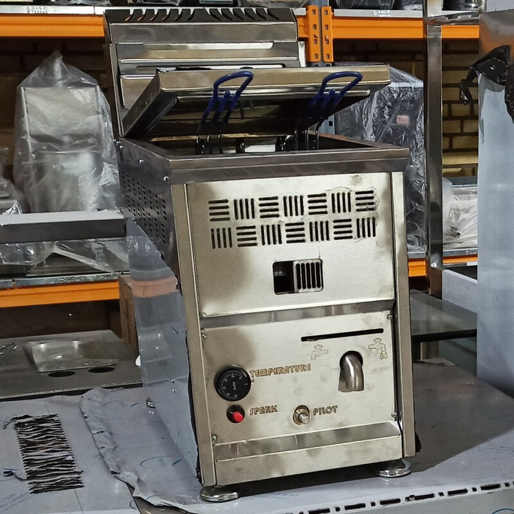 سرخکن گازی رومیزی 12 لیتری دو سبد استیل ترموستاتیک و دارای تنظیم دمای اتومات، شیر تخلیه، جرقه زن، ترموکوپل، درب محفظه روغن، دمپر، یکسال گارانتی و ده سال خدمات